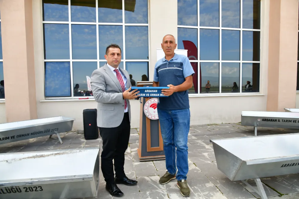 Ardahan’da Tarım ve Orman Bakanlığının “Mera Islah ve Amenajmanı Projeleri” kapsamında 15 köye tahsis edilen metal kürünlerin dağıtımı yapıldı.
