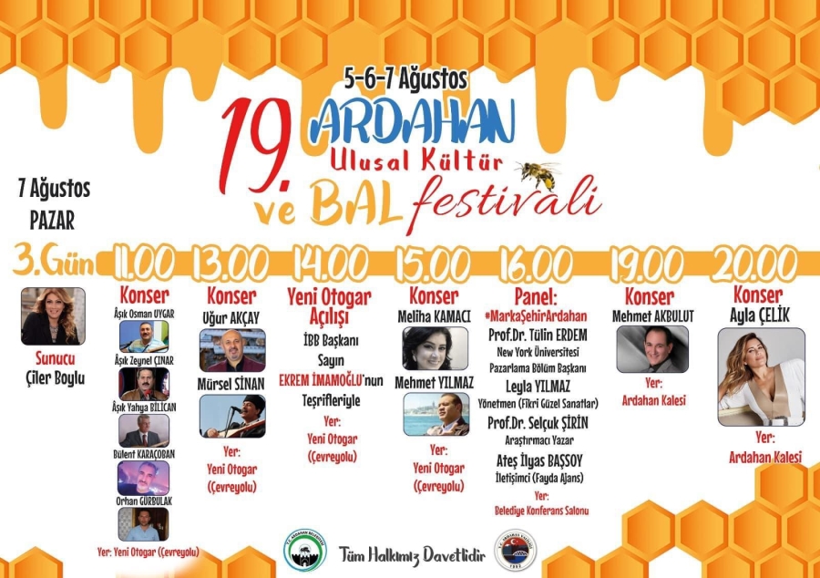 19. ARDAHAN ULUSAL KÜLTÜR VE BAL FESTİVALİ PROGRAMI