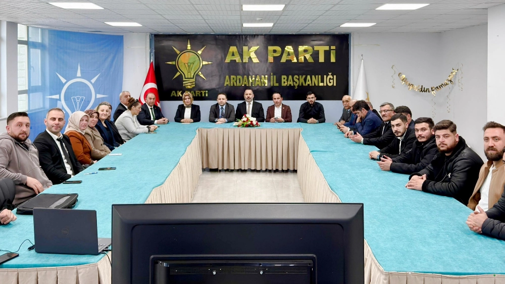 AK Parti Ardahan İl Başkanı Hakan Aydın, Milletvekili Kaan Koç, Kadın Kolları ve Gençlik Kolları başkanları, ilçe başkanları, ilçe teşkilatları ile belediye başkanlarının katılımıyla İl Başkanlığı’nda düzenlenen video konferans toplantısına iştirak etti.