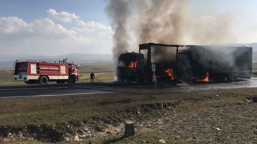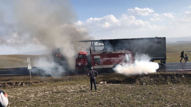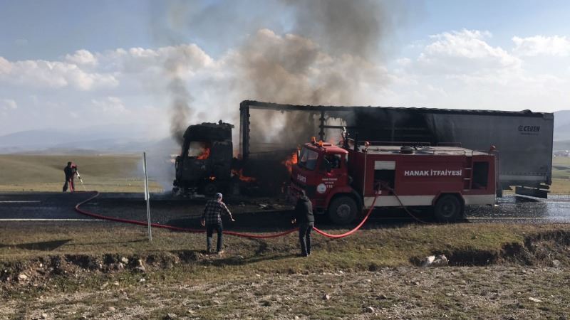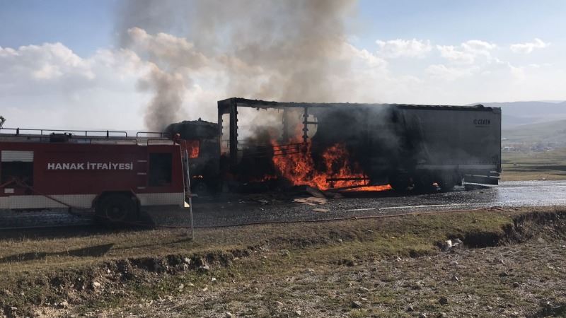 Hanak Belediyesi İtfaiye ekipleri yangını kısa sürede söndürürken tırın gövde kısmı tamamen kullanılamaz hale geldi.