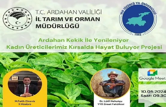 Ardahan İl Tarım ve Orman Müdürlüğü ile Van Yüzüncü Yıl Üniversitesi iş birliğiyle hayata geçirilecek olan "Ardahan Kekik İle Yenileniyor: Kadın Üreticiler Kırsalda Hayat Buluyor" projesi kapsamında kadın üreticilere kekik üretim sahaları kurulacak. Projenin sahibi olan Van Yüzüncü Yıl Üniversitesi öğretim üyesi Dr. Lütfi Nohutçu tarafından, Ardahan ve ilçelerinde görevli ziraat mühendislerine yönelik "Kekik Yetiştiriciliği" eğitimi verildi.