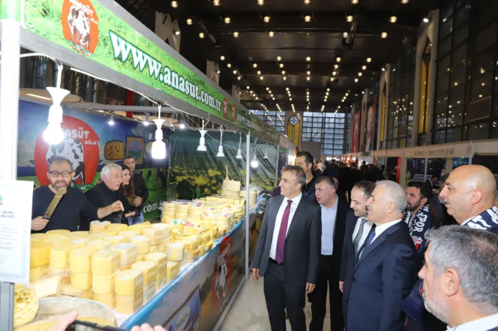 Ankara Altınpark’ta düzenlenen fuarda Ardahan ketesi, pişisi, kazı, kaşarı, coğrafi tescili balı gibi birçok yöresel lezzet başkentlilerin beğenisine sunuldu. Aynı zamanda Ardahan’a özgü kaşar döneri kesilerek fuarı ziyaret eden vatandaşlara ikram edildi.
