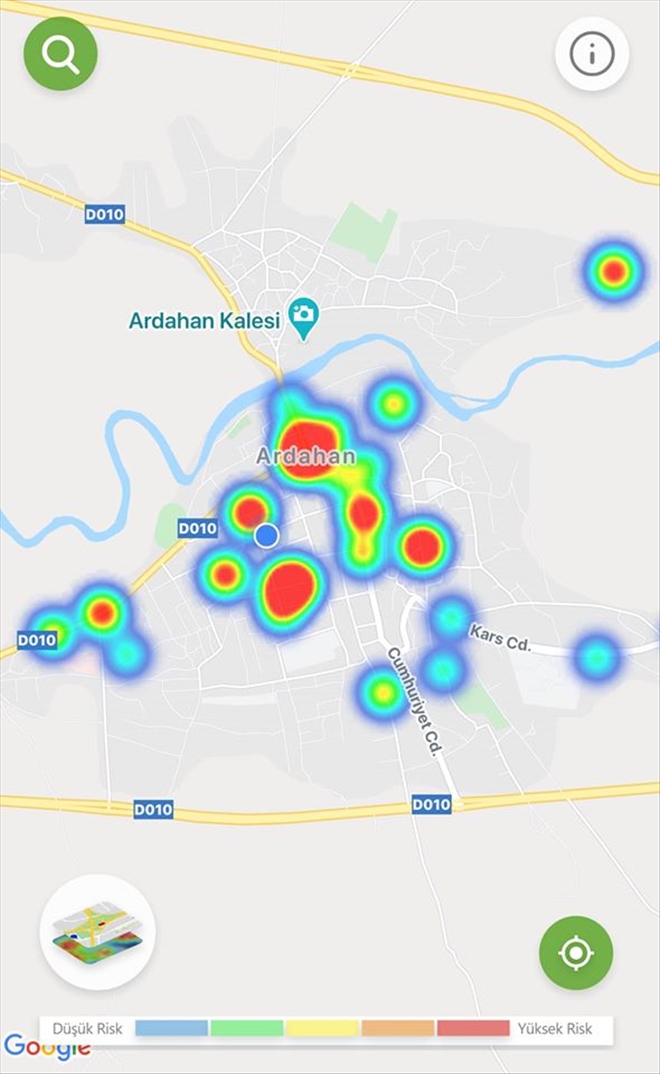 Sağlık Bakanlığı´nın ?Hayat Eve Sığar´ uygulamasında Ardahan´da korona virüs tablosu yeşilden kırmızıya dönüştüğü görülürken, kırmızıya dönen ve yoğunluğun yaşandığı mahalle, cadde ve sokaklarda dikkat çekti.