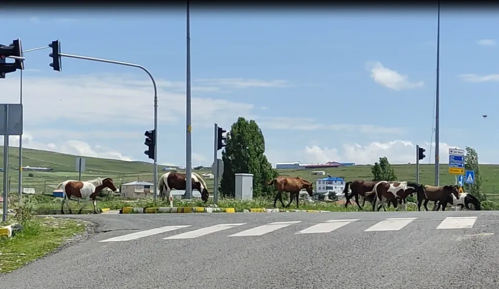 Ardahan’da yollarda başıboş dolaşan atlar trafiği tehlikeye sokuyor.