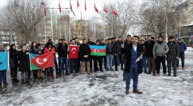 Milli egemenlik parkında toplanan Ardahan Ülkü Ocakları üyesi bir grup, İran´da bir televizyonda yayınlanan Azerilere yönelik hakaret görüntülerini protesto etti.
