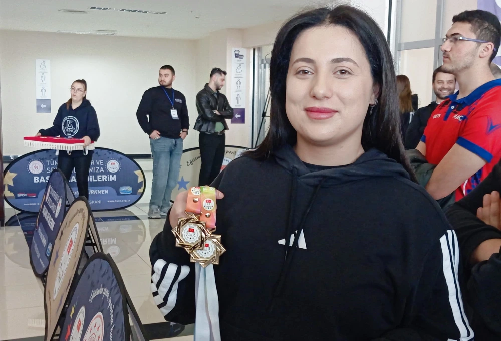 Aybüke Yıldız, Mehmet Akif Ersoy Üniversitesi ev sahipliğinde düzenlenen Türkiye Üniversiteler Arası Bilek Güreşi Şampiyonası’nda büyük bir başarı elde etti. Ardahan Üniversitesi Antrenörlük Bölümü öğrencisi olan Yıldız, 80 kilo kadınlar kategorisinde hem sağ kol hem de sol kolda mücadele ederek iki altın madalya kazandı ve iki kolda da Türkiye şampiyonu olmayı başardı.