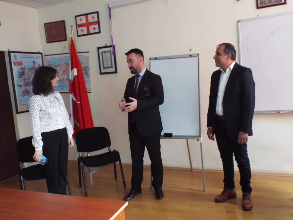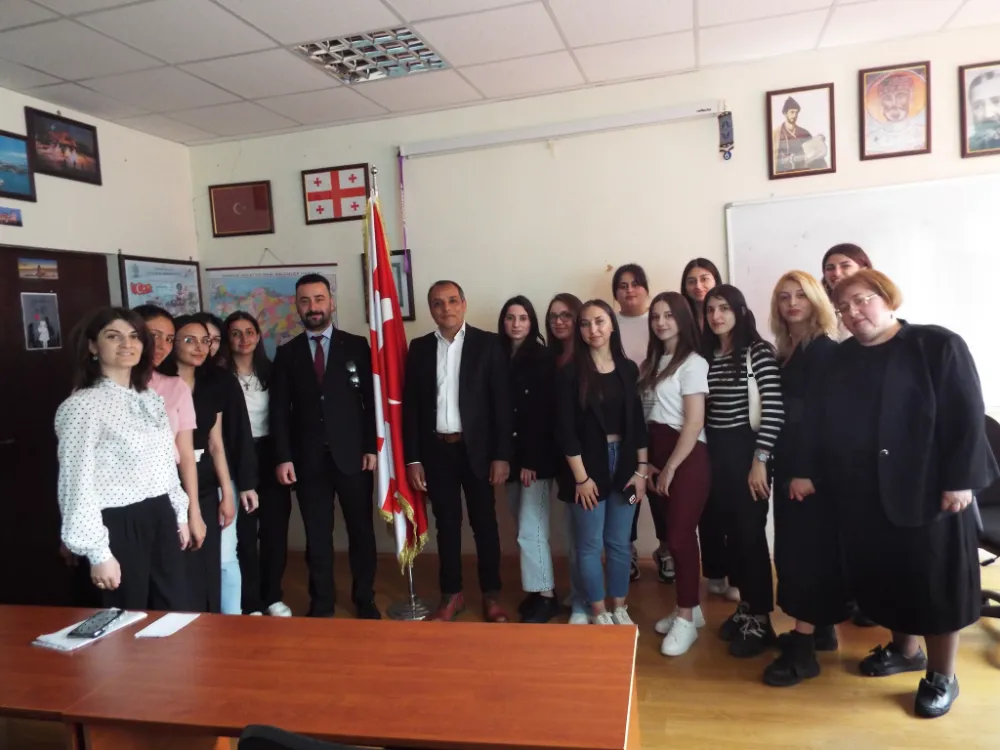 Toplantı sonrası, Samtskhe-Javakheti Devlet Üniversitesi Türkoloji bölümünü ziyaret eden Dr. Öğr. Üyesi Doğan Saltaş burada Türkoloji bölümü öğretim üyeleri ve öğrencileriyle sohbet ederek, üniversite ve Ardahan ile ilgili öğrencilere bilgi verdi.
