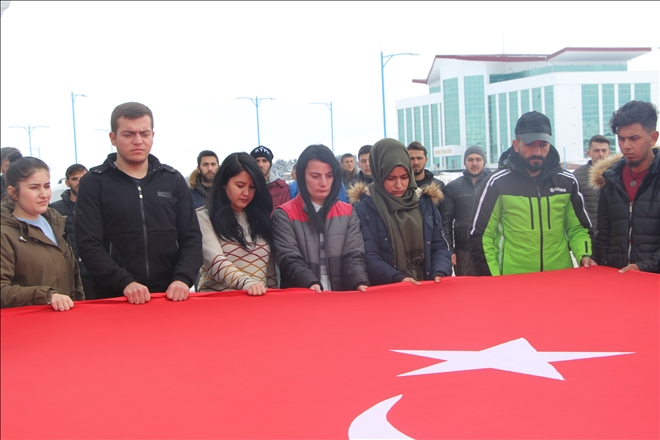 Ardahan Üniversitesi Edebiyat Fakültesi önünde toplanan yüzlerce öğrenci Afrin şehitlerini andı.