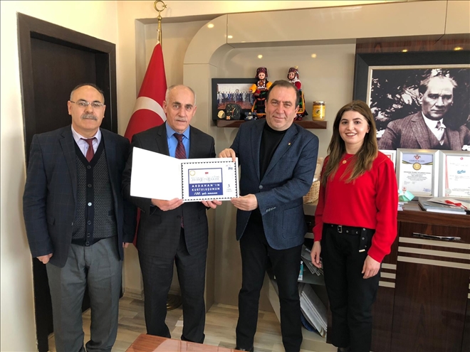 Ardahan Ticaret ve Sanayi Odası Başkanı Çetin Demirci?yi makamında ziyaret eden Ardahan PTT Başmüdürü Cafer Yavuz Ardahan Ticaret ve Sanayi Odasına özel yapılmış 100.yıl pullarını Başkan Demirci´ye teslim etti. Ziyarette PTT Baş Müdürü Cafer Yavuz´a, Pazarlama ve Satış Şefi Ahmet Yılmaz eşlik etti. ATSO