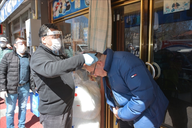 Çalışanların ve halkın sağlığını korumak adına ücretsiz olarak dağıtılan ağız maskesi ve yüz siperliğine vatandaşın ilgisi de yoğun oldu.