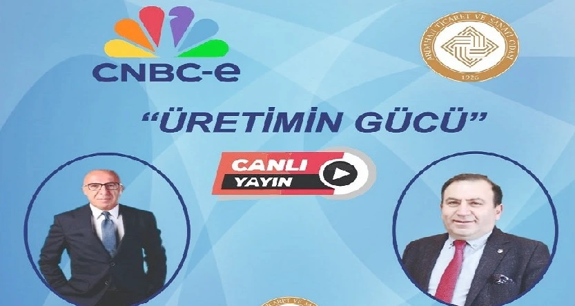 Ardahan Ticaret ve Sanayi Odası Yönetim Kurulu Başkanı Çetin Demirci, ekonomi yayıncılığının önemli kanallarından CNBC-e’de ekranlara gelen “Üretimin Gücü” programına konuk oluyor. Program, 28 Ocak 2026 Çarşamba günü saat 13.30’da canlı olarak yayınlanacak.