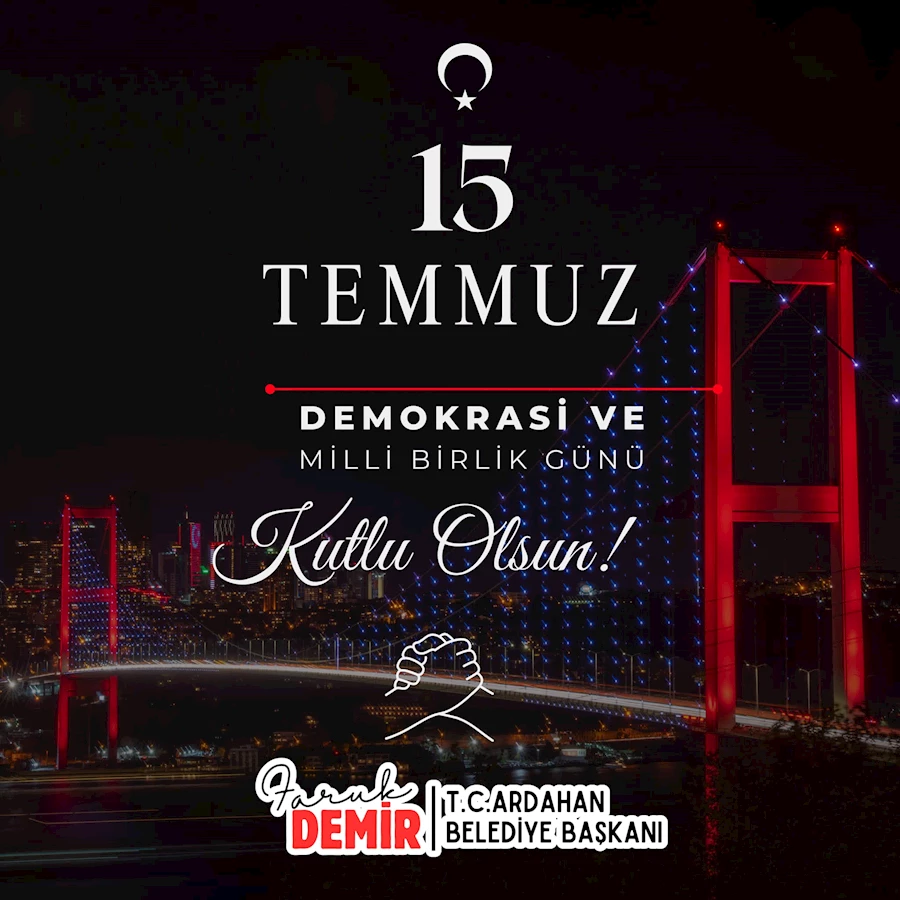 15 Temmuz hain darbe girişiminin üzerinden tam 8 yıl geçti. Ardahan Belediye Başkanı Faruk Demir, 15 Temmuz Demokrasi ve Milli Birlik Günü dolayısıyla mesaj yayımladı.