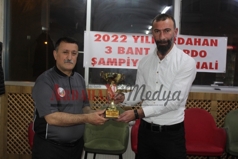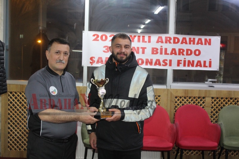 Çekişmeli ve heyecanlı geçen final maçında rakibini 40-23 yenen Uğur Taştan, 2022 yılı Ardahan 3 Bant Bilardo Turnuvası şampiyonu oldu. İkinci İbrahim Kalaycı olurken, Kutluay Karabağlı ise üçüncülüğü elde etti.