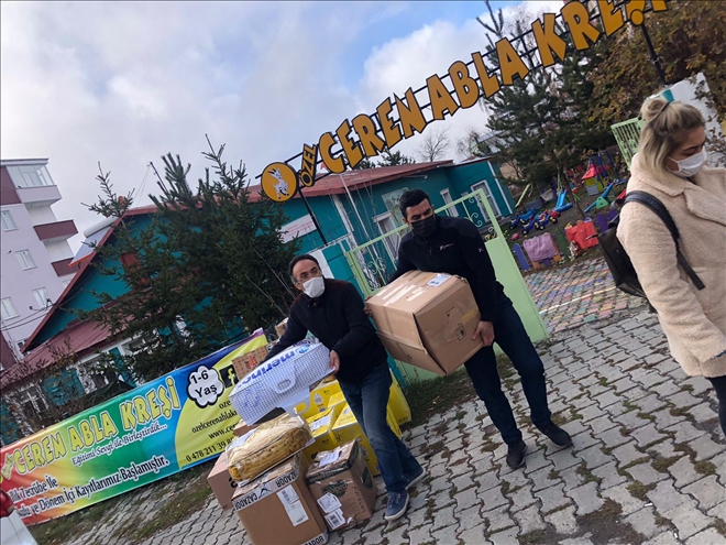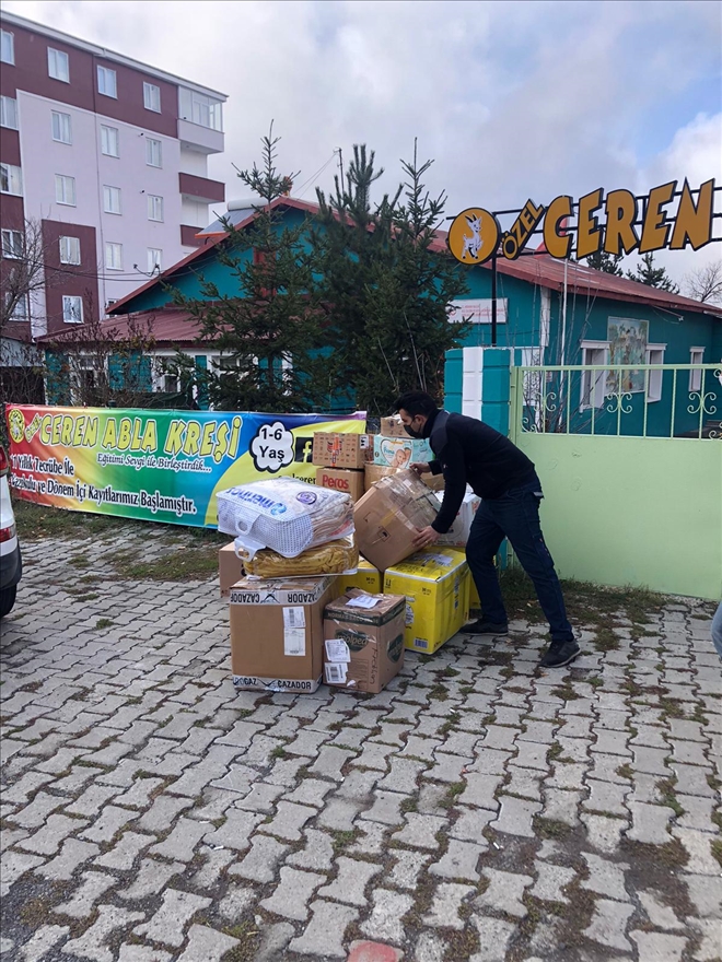 Ceren Abla Kreşinde özel bir itina ile hazırlanan içerisinde bebek bezi, ısıtıcı, su ısıtıcısı, kırtasiyesi malzemesi, hijyen malzemeleri (tırnak makası, şampuan, ıslak mendil, diş macunu fırça, pamuk vb ), havlu, ayakkabı, biberon, atkı, bere, çarşaf, battaniye, kıyafet, bebek maması, gıda kolisi, maske, dezenfektan ve kolonya gibi malzemelerin bulunduğu yardım kolileri deprem bölgesine gönderilmesi için AFAD ekiplerine teslim edildi.