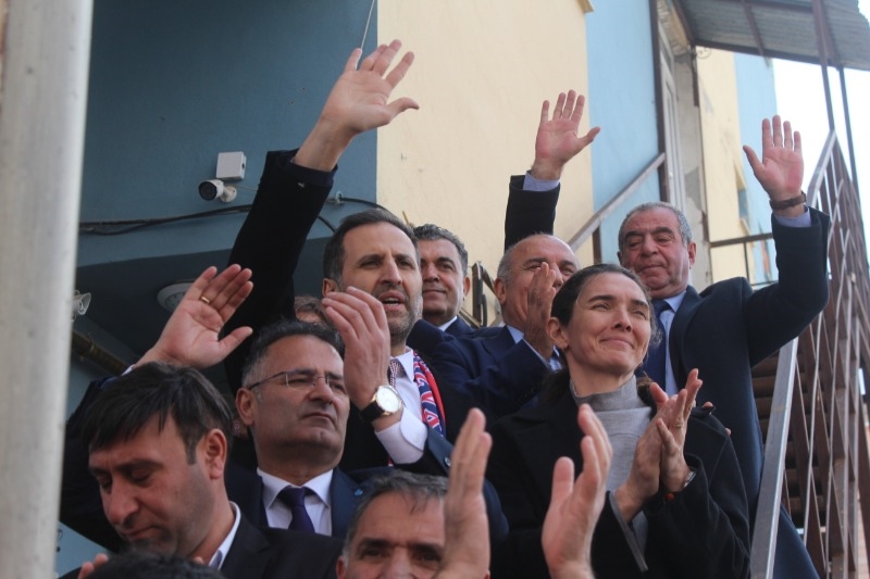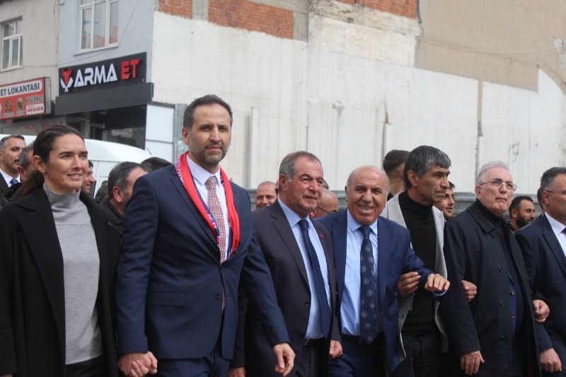 Adaylar, konvoy ile geldikleri Dursun Akçam Kültür Merkezi’nde düzenlenen aday tanıtım toplantısında partililerle buluştu. Dursun Akşam Kültür Merkezi’nde oluşan yoğun kalabalık nedeniyle adaylar dışarıda seçmenlerine seslendi.