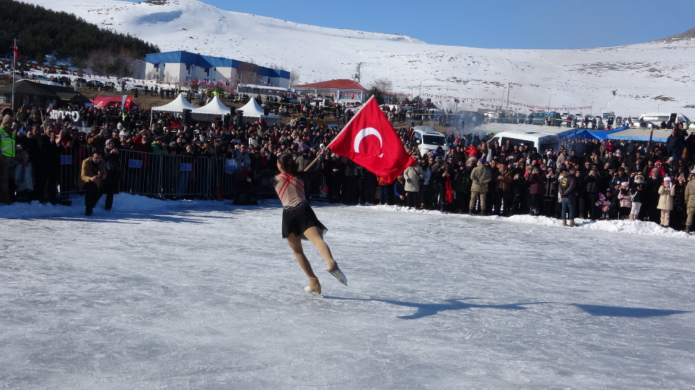Festival kapsamında buz tutan göl üzerinde yapılan etkinlikler renkli görüntülere sahne oldu.