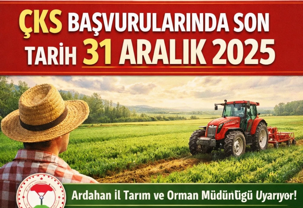 Ardahan İl Tarım ve Orman Müdürlüğü, ÇKS başvurularının 31 Aralık 2025’te sona ereceğini belirterek çiftçileri başvurularını zamanında yapmaları konusunda uyardı.