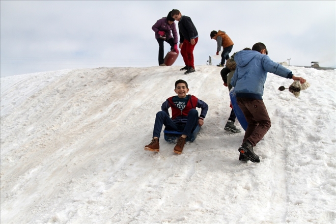 Ardahan´da kar yağışına en çok sevinen yine çocuklar oldu. Çocuklar, kendi yaptıkları kızaklarla kaymanın tadını çıkardı.