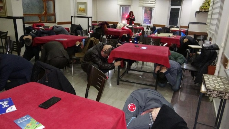 Türkiye genelinde yapılan deprem ve afet tatbikatı Ardahan'da Öğretmenevinde gerçekleştirildi. İl protokolünün de katıldığı tatbikatta Öğretmenevinde vatandaşlar temsili depremin başlaması ile çök-kapan-tutun talimatlarını yerine getirdi. Tatbikat öncesinde AFAD yetkilileri, tatbikata ilişkin bilgilendirmede bulundu.