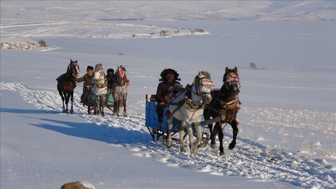 Doğunun incisi Çıldır Gölü´nde atlı kızakla türkü keyfi