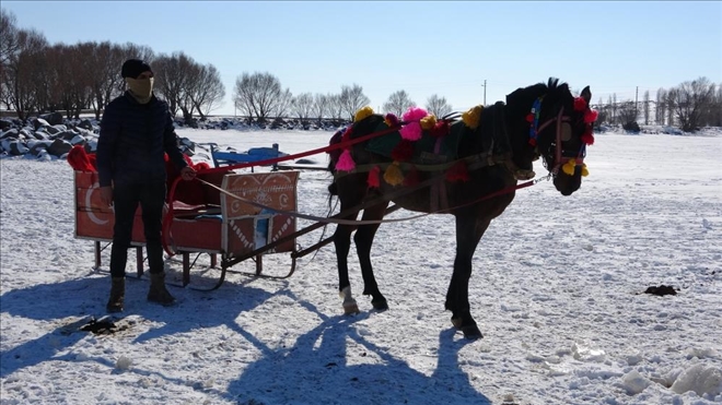 Kış turizminin cazibe merkezlerinden olan Çıldır Gölü´nde atlı kızak keyfi devam ediyor.