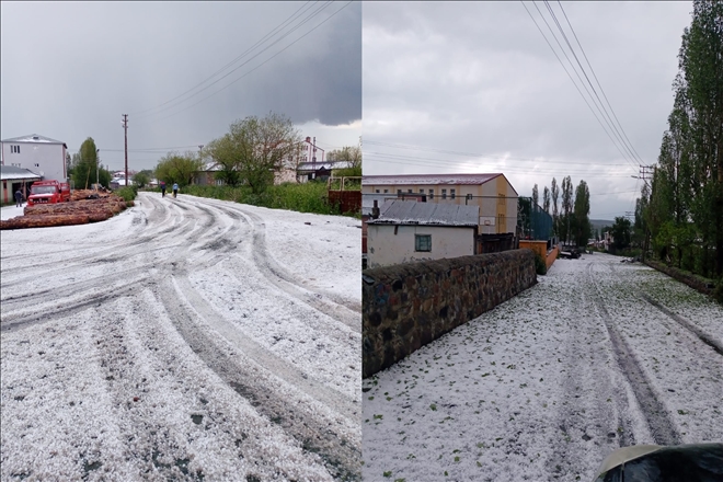 Ardahan´da bugün öğlen saatlerinde etkili olan dolu yağışı, birçok bölgeyi beyaza bürüdü.
