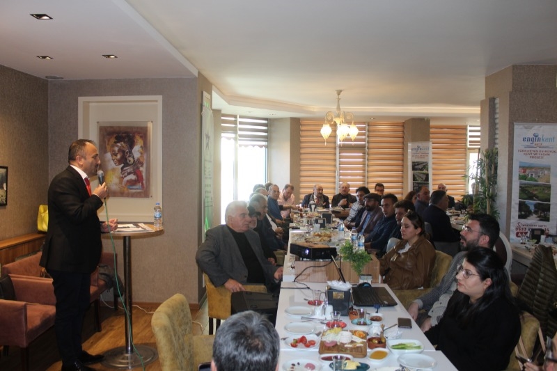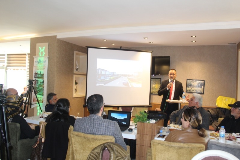Geniş katılımlı düzenlenen toplantıda konuşan Üzeyir Engin, Engin Kent konaklama projesinin hazırlıklarını tamamladığını duyururken, Ardahanlı hemşehrilerinden projeye sahip çıkmalarını istedi.