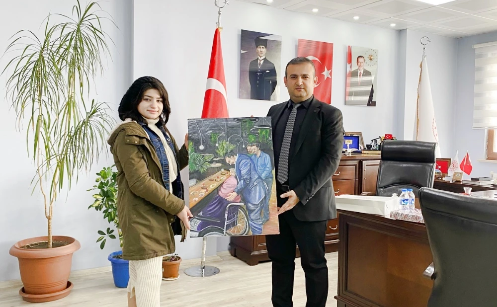 Ardahan Güzel Sanatlar Lisesinde öğrenim gören bir öğrenci, Ardahan Aile ve Sosyal Hizmetler (ASH) İl Müdürü Mahmut Çetinkaya’nın portresini çizerek makamında ziyaret etti.