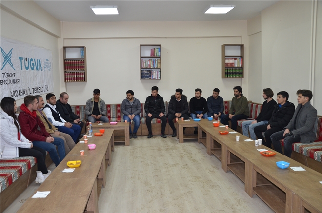 Türkiye Gençlik Vakfı (TÜGVA) Ardahan İl Temsilciliği Çalışan Gençlik Koordinatörlüğü tarafından düzenlenen ´İşin Ehlinde Programları´ kapsamında gençlerle bir araya gelen Ardahanlı işadamı Orhan Gökdemir, deneyimlerini paylaştı.