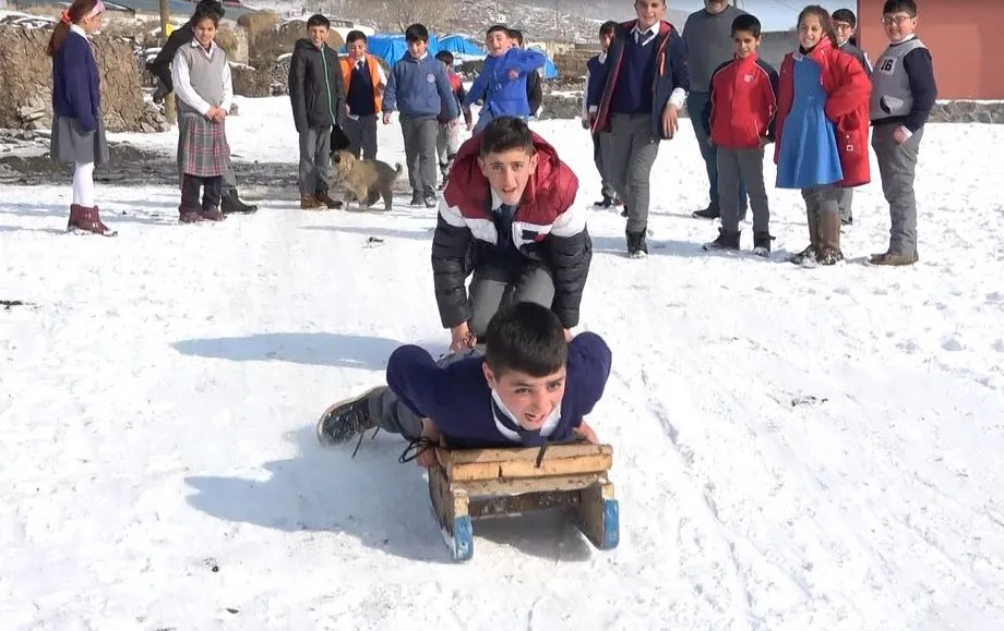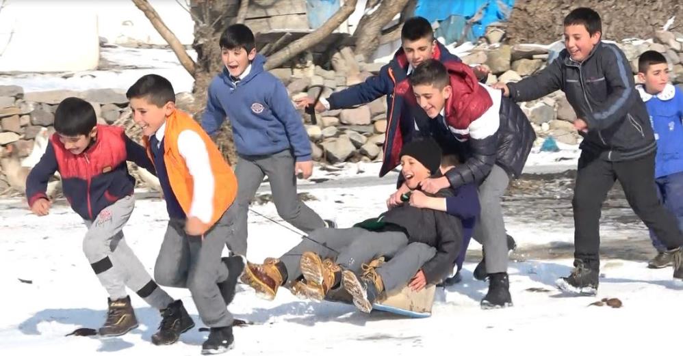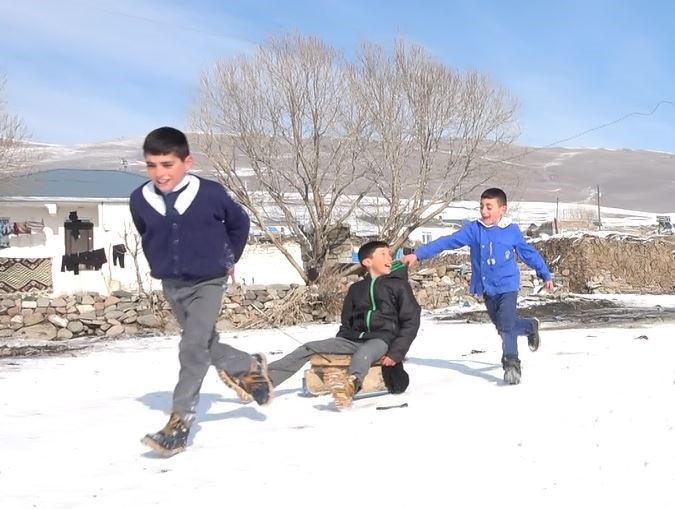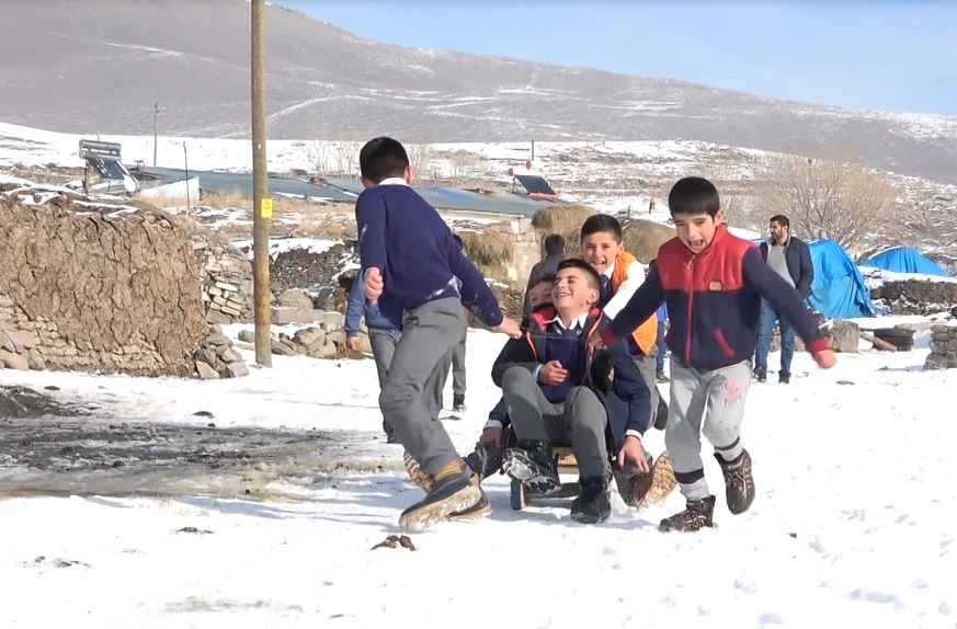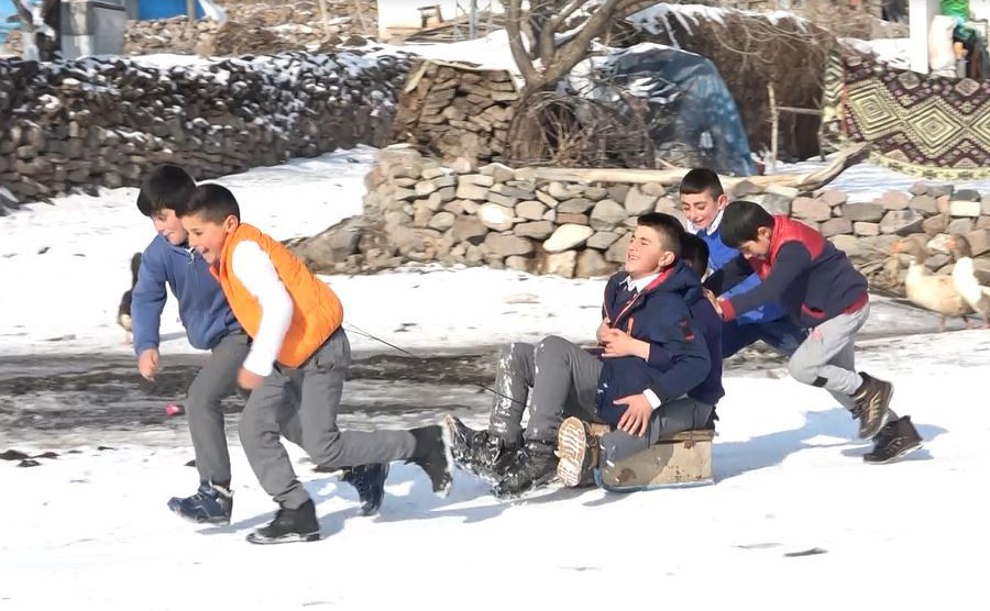Kar yağışıyla birlikte beyaza bürünen köyde öğrenciler eğlence olarak kartopu oynayıp kızak kaydıklarını söyleyerek, "Her gün bir araya gelip kızak kayarak eğleniyoruz. Bazen de kartopu oynayıp karın tadını çıkartıyoruz" dedi.