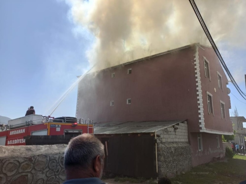 Ardahan merkeze bağlı Sulakyurt köyünde 2 katlı evin çatı katında çıkan yangın korkuttu.