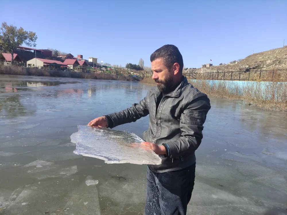Kura Nehri'nde yüzeyin hava sıcaklığının sıfırın altına düşmesiyle birlikte donmaya başladığını söyleyen Serhat Şuay, "Son günlerde etkili olan soğuk hava nedeniyle Kura nehrinin yüze dondu. Sabah saatlerinde hava sıcaklığı eksi 10 dereceye kadar düşmesiyle araçlar çalışmıyor. Şu anda kazak, mont, bot ve yün elbiseler giyerek kendimizi koruyabiliyoruz. Allah yardımcımız olsun, çünkü kış erken geldi diyebiliriz'' dedi.