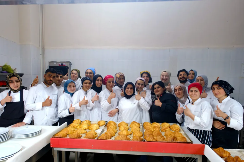 Ardahan Üniversitesi Teknik Bilimler MYO Aşçılık Programı öğrencileri Türkiye’nin önde gelen tatlı şefleri Abdülsamet Soydan ve Murat Süzergöz’den kruvasan yapımı üzerine uygulamalı eğitim aldı.