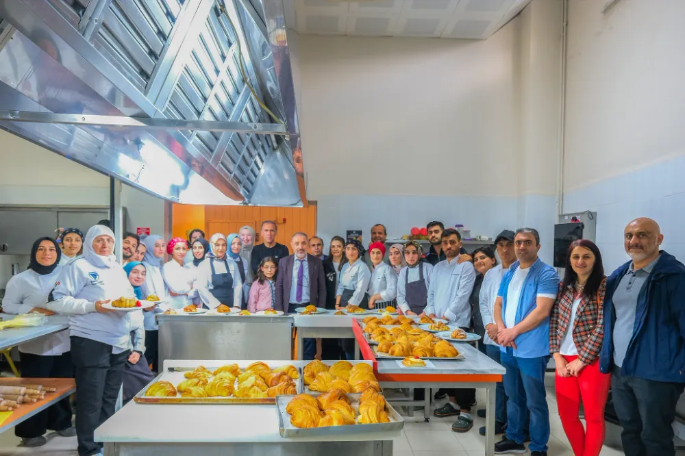 Uygulamalı eğitimin ardından Rektör Prof. Dr. Mehmet Biber ile personeller öğrencilerin yaptığı lezzetli kruvasanları tadarak tam not verdi.