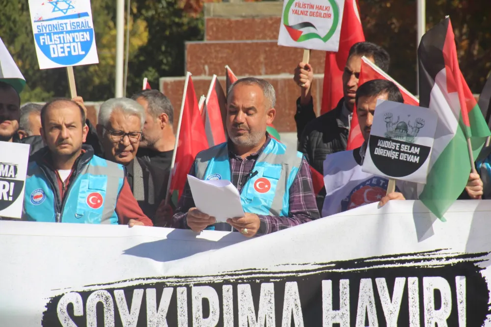 Memur-Sen İl Başkanı Karataş açıklamasında şu ifadelere yer verdi; “Bugün Türkiye genelinde Siyonist İsrail’in yaptığı soykırımı lanetlemek, Filistinli kardeşlerimizin yanında olduğumuzu göstermek için alanlardayız.