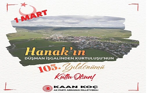 Bu anlamlı günün önemine dikkat çeken Koç, mesajının devamında tüm kahramanları rahmet ve minnetle andığını belirterek, “Bu anlamlı gün vesilesiyle tüm kahramanlarımızı rahmet ve minnetle anıyor; aziz şehitlerimize Allah’tan rahmet, gazilerimize sağlıklı ve huzurlu ömürler diliyorum. Hanak’ımızın kurtuluşu kutlu olsun” dedi.
