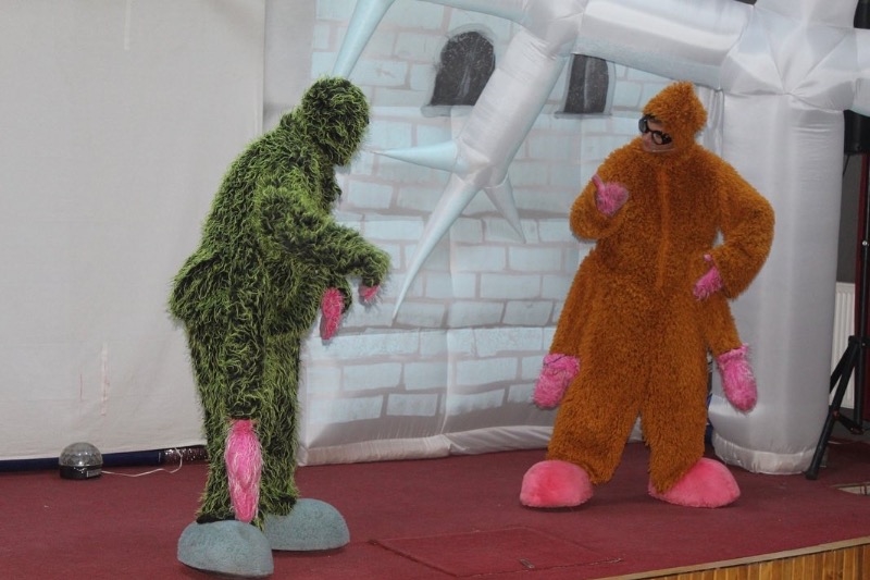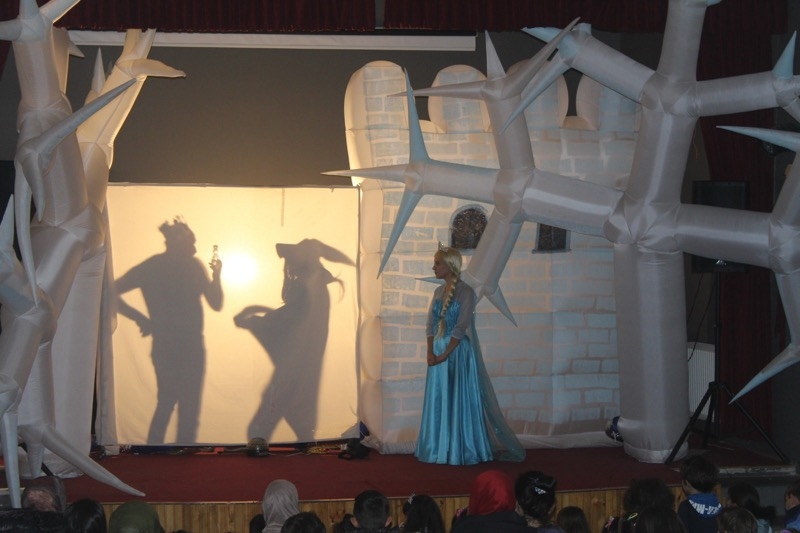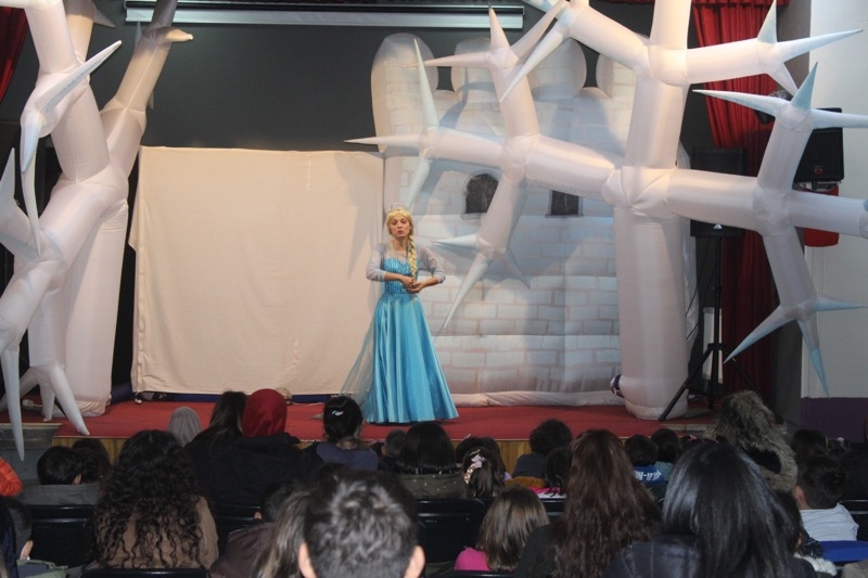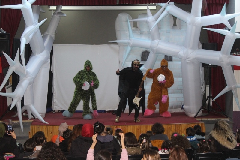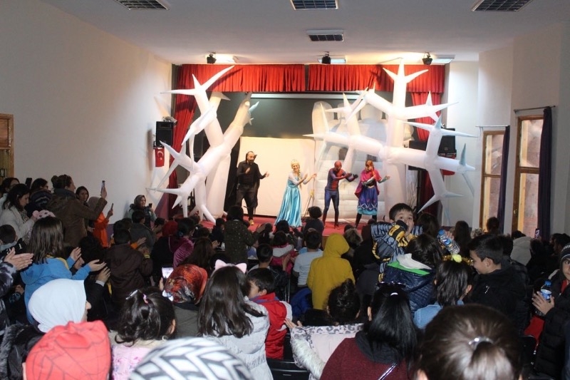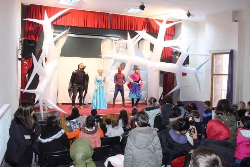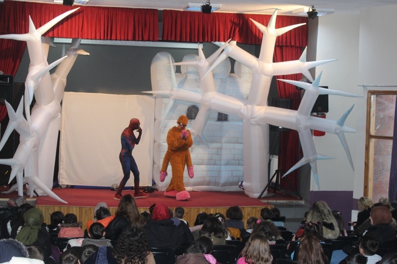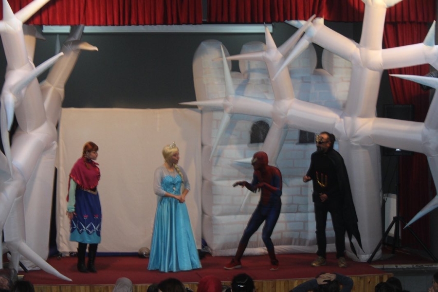 Sahneye çıkan oyuncular müzikli ve danslı çocuk oyunu Karlar Ülkesi Örümcek Adam Macerasını çocuklarla birlikte eğlenerek sergilediler.