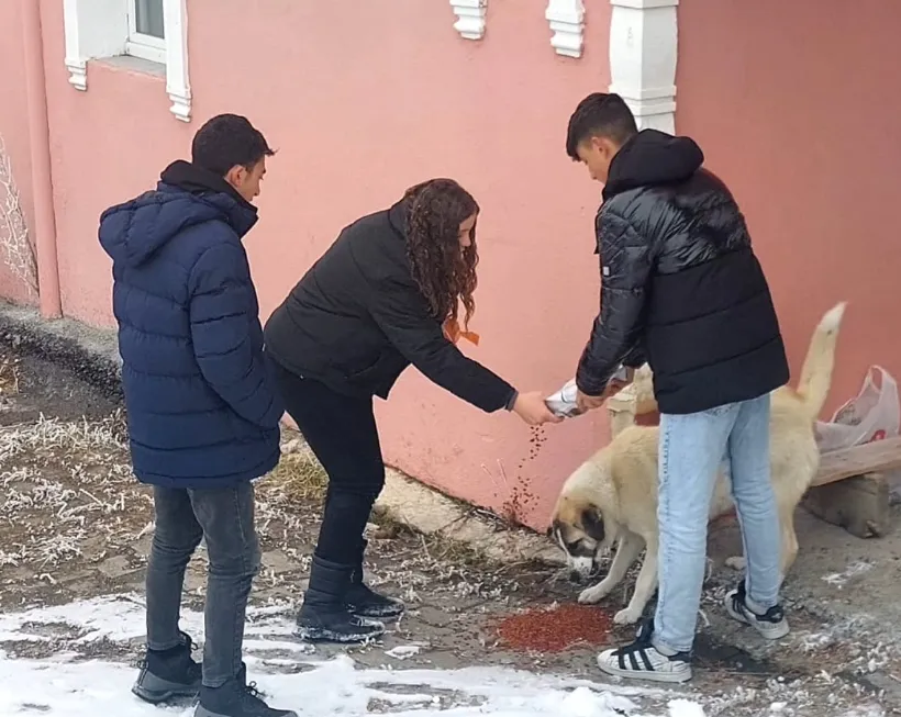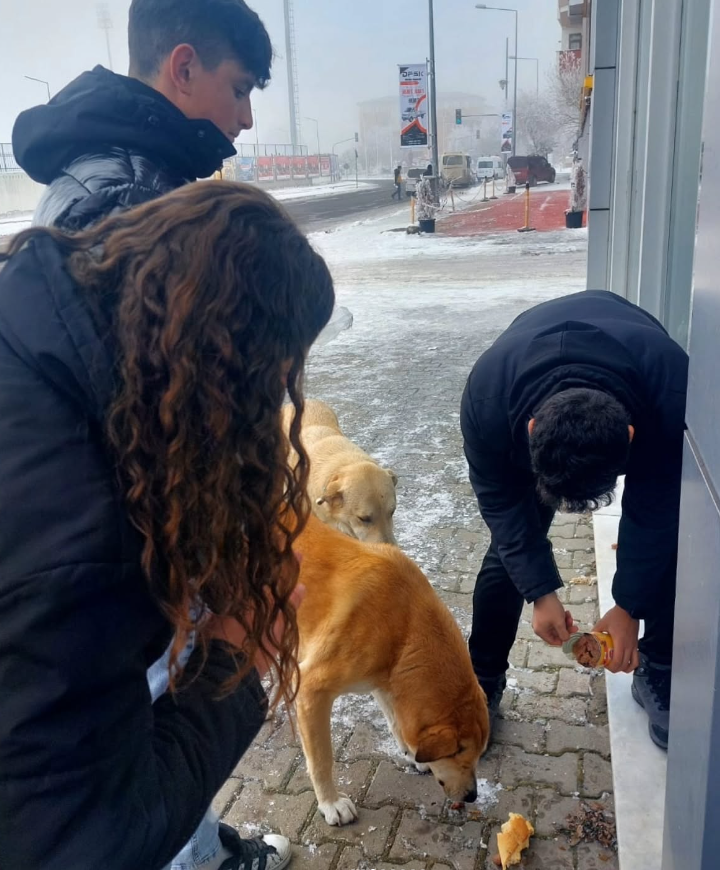 Öğrenciler, sosyal sorumluluk gereği sokak hayvanlarına yardım ettiklerini ifade ederek, herkesi aynı duyarlılıkta olmaya davet etti.