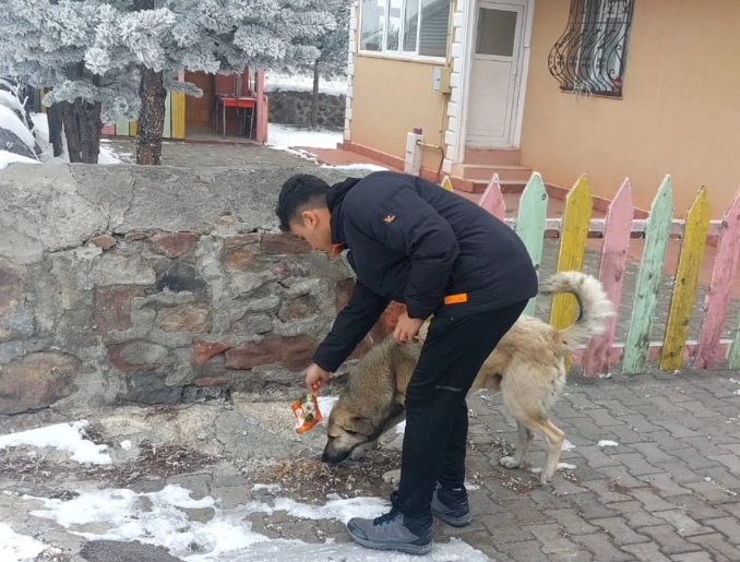 Ağır kış şartlarının yaşandığı Ardahan’da sokak hayvanları yiyecek bulmakta zorluk çekiyor. Şehit Uzman Çavuş İbrahim Erdoğan Mesleki ve Teknik Anadolu Lisesi Değerler Kulübü sosyal sorumluluk faaliyetleri kapsamında “Sokak hayvanlarını besliyoruz” etkinliği düzenledi.
