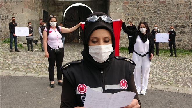Tarihi Ardahan kalesi önünde sosyal mesafe kurallarına uygun bir şekilde toplanan TYP´li Özel Güvenlik Görevlileri adına konuşan Gülşen Dede, kendilerine verilen görevleri kayıtsız, şartsız yerine getirdiklerini dile getirerek, ´´Bizler her türlü riske karşı öğrencileri korumakla görevliyiz. Ve her yıl okulların açık olduğu süre içerisinde bu görevi layıkıyla yerine getiren 20 bin kişiden bir kaçıyız. Bize verilen yetki ve sorumluluk çerçevesinde öğrencilerimizi her türlü olumsuzluklardan korumakla yükümlüyüz. Okullarda görev almaya başladığımız tarih öncesinde meydana gelen sorunların biz güvenlik görevlilerinin başlamasıyla azaldığı ve öğrencilerin iç huzuruyla okula gelip gitmeleri velilerin okullara olan güvenini de arttırmış oldu. Bizler sonbaharda görevlendirilip Haziran ayında ise işten çıkartılmaktayız. Çalıştığımız süre bir yıldan az olduğu için kıdem tazminatı, ihbar tazminatı ve işsizlik maaşı alamamaktayız. Ayrıca bir sonraki yıl çalışma garantimiz olmadığı gibi, iyice tanıdığımız öğrenci ve çevresine hakim olduğumuz aynı okulda çalıştırılma garantimiz de bulunmamaktadır. Aile geçindiren bizler Milli Eğitim Bakanlığına bağlı TYP Özel güvenlikler olarak süreklilik talep ediyoruz. Unutmayın, çocuklarınız çocuklarımız, emanetiniz emanetimizdir.´´ ifadelerini kullandı.