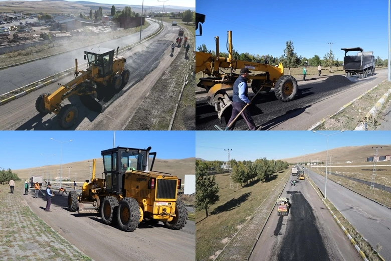 Ardahan Belediyesi Fen İşleri Müdürlüğü ekipleri, sanayi yolunda sıcak asfalt serim çalışmalarına başladı
