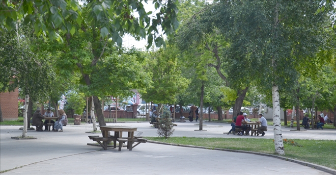 Ardahan´da sıcaktan bunalan vatandaşlar serinlemek için soluğu Kent Parkı´ndaki ağaçların altında aldı.