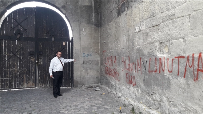 Halilefendi Mahallesinde bulunan Ardahan Kalesi´nin duvarlarına kimliği belirsiz kişi ya da kişilerce sprey boyayla yazılar yazıldı.