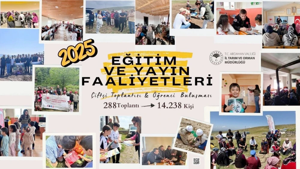 Ardahan İl Tarım ve Orman Müdürlüğü, 2025 yılı Eğitim ve Yayım Faaliyetleri kapsamında il genelinde yoğun bir çalışma yürüttü. Yıl boyunca gerçekleştirilen 288 eğitim ve toplantı ile 14 bin 238 kişiye doğrudan ulaşıldı.