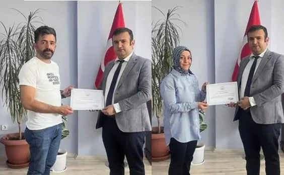 Teşekkür belgesi töreninde Kurşun çifti, duygu dolu anlar yaşarken, yeni görev yerlerinde de başarılar dileyen Müdür Çetinkaya, Kahramanmaraş'ta da aynı özveriyle çalışacaklarına olan inancını dile getirdi.
