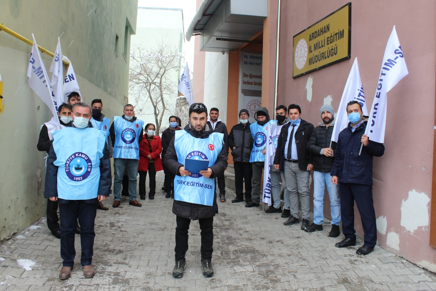 Türk-Eğitim Sen Ardahan Şube Başkanı Fatih Koç, Öğretmenlik Meslek Kanunu ile ilgili talebi dile getirmek amacıyla basın açıklaması düzenledi. İl Milli Eğitim Müdürlüğü binası önünde düzenlenen basın açıklamasına sendika üyeleri katıldı.