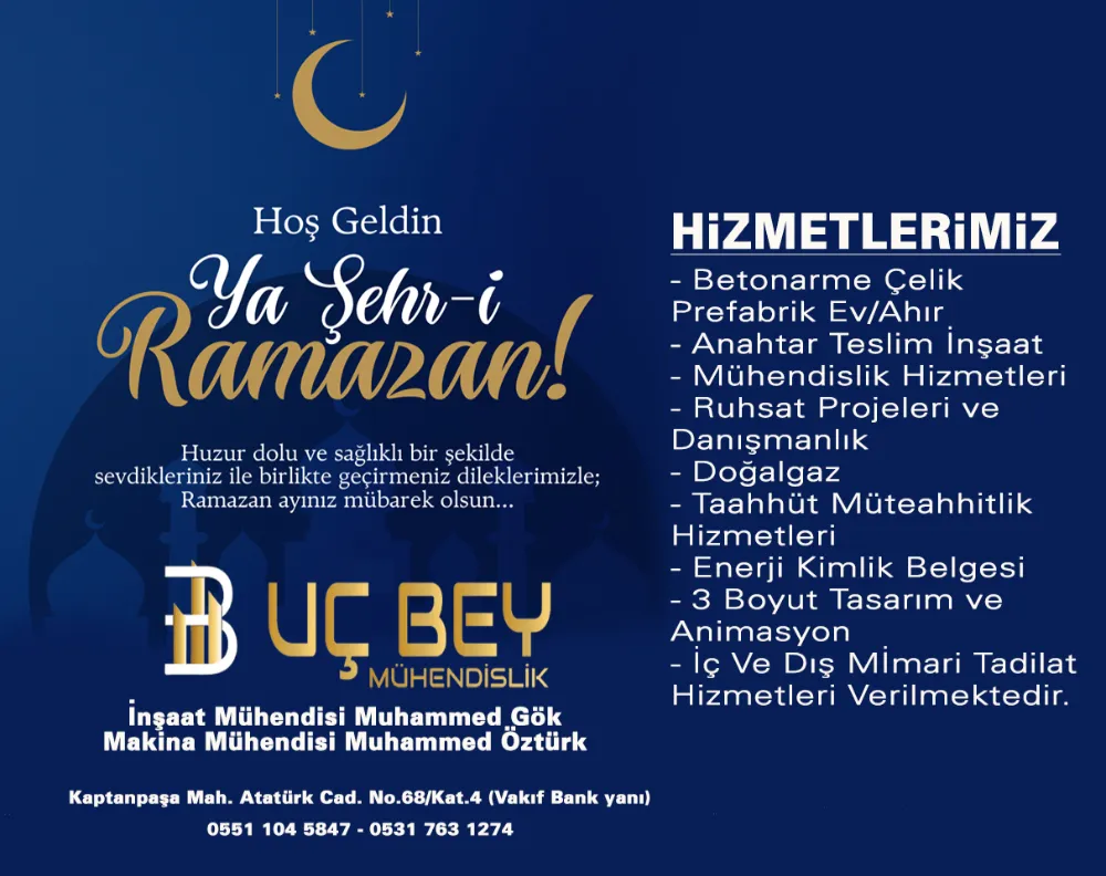 Huzur dolu sağlıklı bir şekilde sevdikleriniz ile birlikte geçirmeniz dileklerimizle; Ramazan ayınız mübarek olsun.