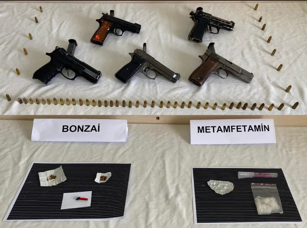 Cumhuriyet Savcısının talimatıyla, ele geçirilen uyuşturucu ve uyarıcı maddeler ile ruhsatsız tabanca ve fişeklere el konularak, şahıslar hakkında adli işlem başlatıldı.