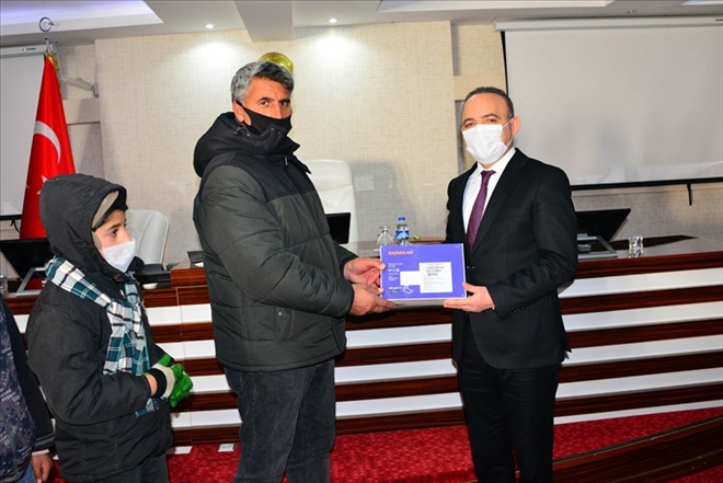 Programda daha sonra Vali Öner, Vali yardımcısı Mustafa Gürbüz ve İl Milli Eğitim Müdürü Erhan Bulut tarafından öğrenciler ve katılım sağlayamayan öğrencilerin velilerine tabletlerin dağıtımı yapıldı.
