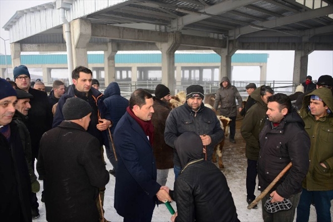 Ardahan Valisi Mustafa Masatlı, Hayvan pazarını ziyaret ederek, hayvan alım satımı yapan üreticilerle görüştü, pazarlıklara eşlik etti.